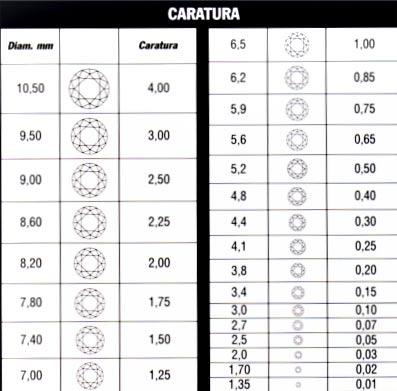 Il peso del diamante si dichiara in carati. Un carato (ct) corrisponde a 0,200 grammi di peso, la quotazione in borsa avviene in centesimi di carato.